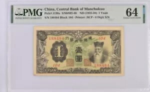 中国、満州国中央銀行、1 元 ND (1935-38)、PMG 64 UNC