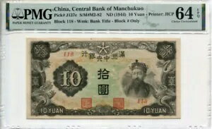 中国、満州国中央銀行 ND 1944 10 元プリンター: JICP PMG 64 # ?洲のみ