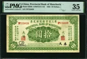 中国満州銀行 1922年、10ドル、S2938、PMG 35 VF