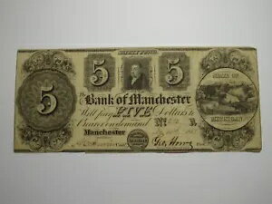 1837 年マンチェスター ミシガン州の 5 ドルの時代遅れの通貨紙幣!マンチェスター銀行