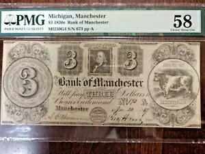 ~ 1837年 $3 3ドル マンチェスター銀行 - ミシガン州 MI1250G4