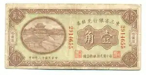 中国地方銀行 満州省銀行 10セント 1923 VF #S2941a