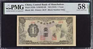 中国、満州国中央銀行、1 元 ND (1944) PMG 58 EPQ ピック #J135b