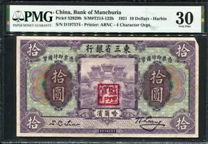 中国 (満州銀行) 1921、10 ドル-ハルビン、S2929b、PMG 30 VF