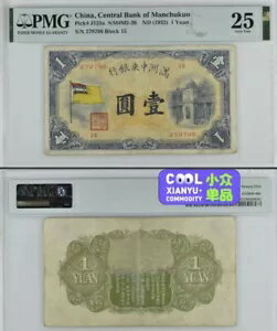 希少な中国紙幣 ND 1932 1 元 PMG 25 満州国中央銀行 5 色