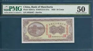 中国満州銀行 10セント、P S2941a、1923年、PMG 50 AU / レアコンディション