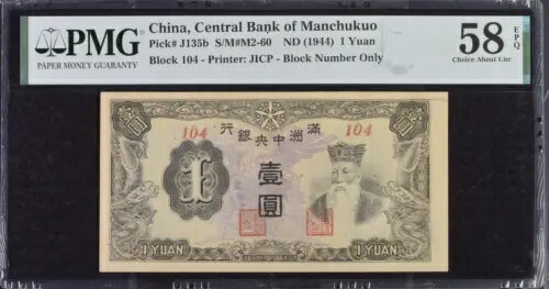 中国、満州国中央銀行、1 元 ND (1944) PMG 58 EPQ ピック #J135b