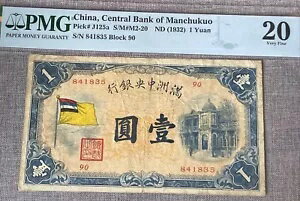 ND (1932) 1 元中国、満州国中央銀行 S/N 841835 PMG 20 VF 紙幣。