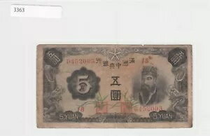 中国紙幣、満州、満州国中央銀行 5元 1944年、PJ136 [3363]
