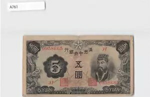 中国紙幣 満州国中央銀行 5元 1937年[A761]