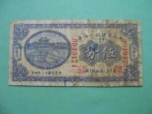 中国、満州 滿洲 1923 年 5 コペイカ、5 セント。満州銀行。ピック-S2940a