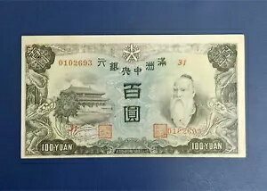 中国満州国中央銀行 100元 1944年 ピック#J138a aUNC