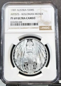 1989年 オーストリア シルバー 500 シリング コロマン モーザー NGC PF 69 ウルトラカメオ トップポップ