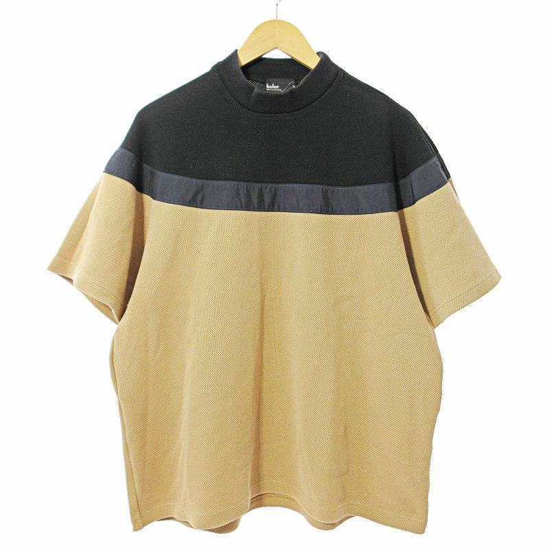 【中古】カラー kolor ビッグカノコ モックネック カットソー Tシャツ 半袖 ボトルネック 3 ベージュ 黒 20SCM-T04202 0716 メンズ 【ベクトル 古着】 250716