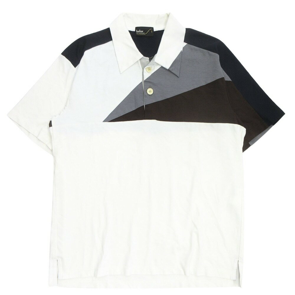 【中古】新品同様 24SS Kolor カラー ポロシャツ シャツ カットソー 半袖 切替 24SCM-T04202 サイズ1 白 ホワイト 茶 ブラウン グレー メンズ Luxs ブランド古着のリュクス