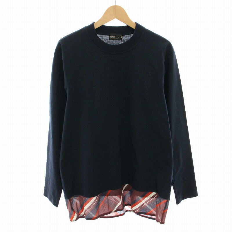 【中古】カラー kolor 18SS ペーパー天竺ロンT Tシャツ カットソー 長袖 裾ストライプ柄 3 紺 ネイビー 赤茶 レッドブラウン 18SCM-T04204 /YT メンズ 【ベクトル 古着】 250425