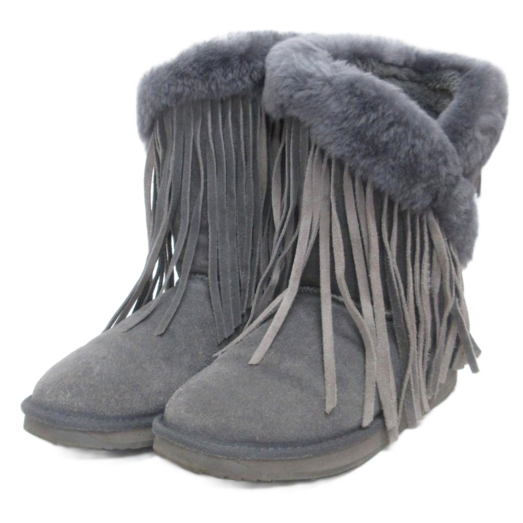 【中古】クーラブラ KOOLA BURRA ムートンブーツ ショートブーツ ラウンドトゥ スエード ファー フリンジ グレー 36 レディース 【ベクトル 古着】 250923