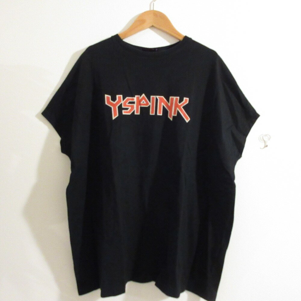 【中古】美品 TAKESHI KOSAKA by Y's Pink Label ワイズピンクレーベル ロゴプリント 半袖 クルーネック Tシャツ カットソー サイズ2 ブラック レディース Luxs ブランド古着のリュクス