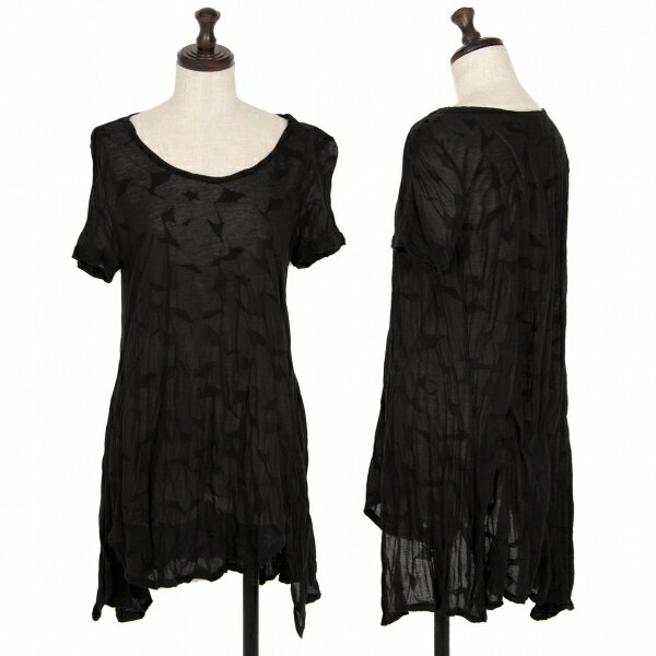 【中古】 タケシコウサカバイ ワイズ ピンクレーベルTAKESHI KOSAKA by Y's Pink Label シャドー総柄シースルー半袖ロングカットソー 黒M位【レディース】