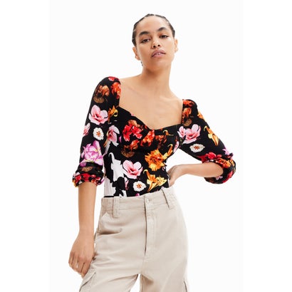 デシグアル Desigual M. Christian Lacroix 花柄 ボディスーツ (グレー/ブラック)