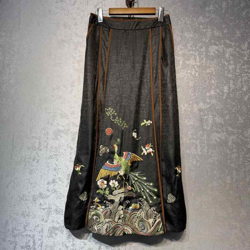 ・スタイル: 中国風・ウエスト: 自然・素材: 糸・生地加工: 刺繡・スカートタイプ: Aラインスカート・スカート丈: ロング・裏地: ・シルエット: Hライン・柄: 花柄・サイズ展開: 4XL, 3XL, 2XL, XL・カラー展開: ブラック