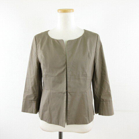 【中古】ラグリーフ LAGRIFFE ノーカラージャケット 七分袖 ストレッチ 茶 38 *A466 レディース 【ベクトル 古着】 250710