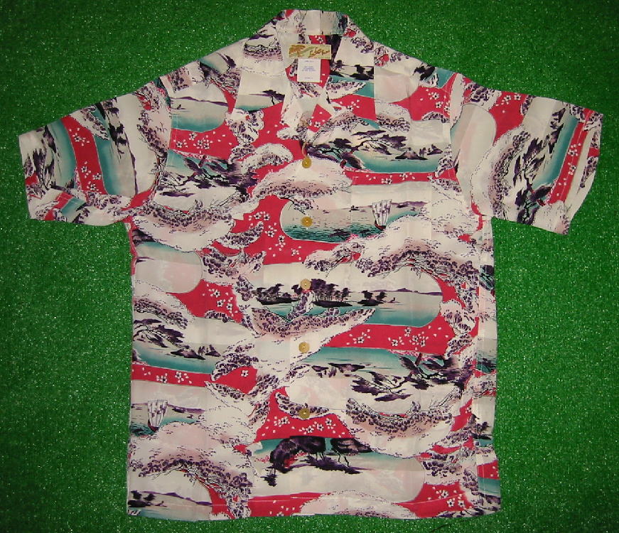 アロハシャツ|LALAKAI|ララカイ|HL006R|ピンク|桃色|メンズ|和柄|風景画|シルク100%|送料無料