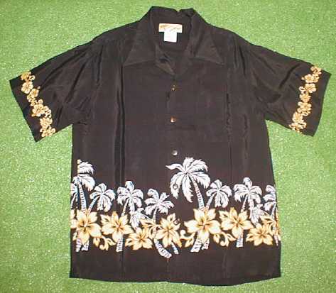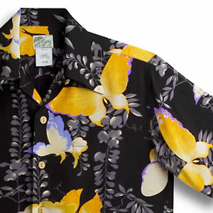 アロハシャツ・ララカイ(LALAKAI)|マカナレイ(MAKANALEI)の姉妹ブランド|HL-028 大蝶|ブラック|メンズ|ちりめんシルク|薄手生地|半袖|アロハタワー(アロハシャツ販売) LALA KAI