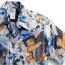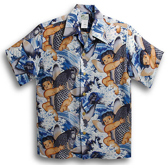 アロハシャツ|メンズ|レディース|LALAKAI・ララカイ|HL025BL|紺・青|和柄|金太郎|鯉|子供の日|節句|イベント|おしゃれ|個性派|人気|プレゼント|シルク100%/|開襟・オープンカラー|送料無料