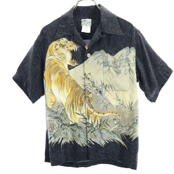 古着 LaLaKai ララカイ シルク 虎柄 半袖 アロハシャツ XS 黒系 開襟 メンズ 【中古】