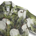 アロハシャツ・ララカイ(LALAKAI)|HL-029 鶴と松|グリーン|メンズ|縮緬(ちりめん)シルク|薄手生地|半袖|アロハタワー(アロハシャツ販売) LALA KAI