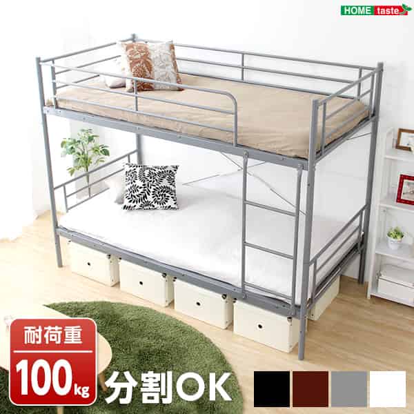 耐震性抜群のスチールパイプ製2段ベッド! 上段・下段が分割できる構造でシングルベッド2つにも変更可能! メッシュ床だから、通気性抜群で年中快適! カラーは選べる4色展開!■サイズ:外寸:(約)幅204.5x奥行き103.5x高さ161.5cm※商品重量:(約)53kg■カラー:ブラック ホワイト シルバー ブラウン■素材:構造部材:スチールパイプ表面塗装:粉体塗装■その他:・お客様組立商品です・梱包サイズ:(約)(2-1)105.5x110.5cmx28cm(12才) (2-2)205.5x45.5x9cm(3才)・梱包重量:(約)54kg こちらの商品はメーカー仕入れ商品となっておりますので、正確な在庫数量が把握できません。 在庫有の状態になっておりましてもメーカーで欠品となっている場合もございますので、 たいへん申し訳ございませんが、お急ぎの場合や確実にお買い求めご希望のお客様はご購入前に 在庫をお問合せ頂きますようお願い致します。