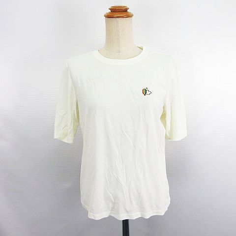 【中古】Laura Fiume MILANO Tシャツ カットソー 五分袖 クルーネック 刺繍 コットン 42 クリーム ※EKM レディース 【ベクトル 古着】 250726