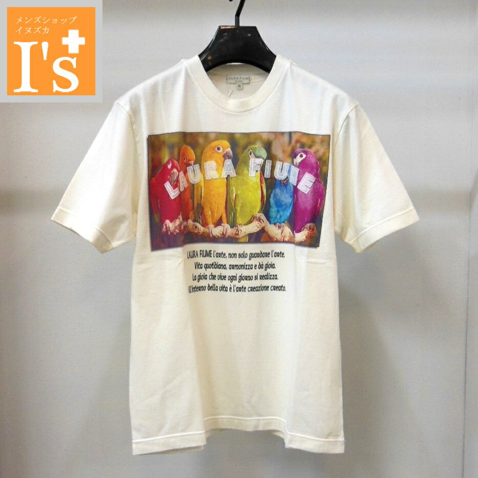 35%OFF【春夏 お買い得 OUTLET SALE】LAURA FIUME (ラウラ) ヴィンテージ(古着風)×バードモチーフ デザイン 半袖 丸首 綿100% Tシャツ ヴィンテージホワイト【46(M)】 ラウラ服 セール ブランド ゴルフ 服 日本製 トップス