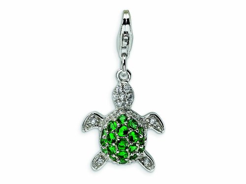 【中古】【未使用・未開封品】Amore LaVitaスターリングシルバーグリーンとクリアCZ Turtleロブスタークラスプブレスレットチャーム