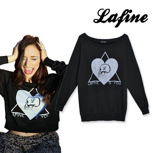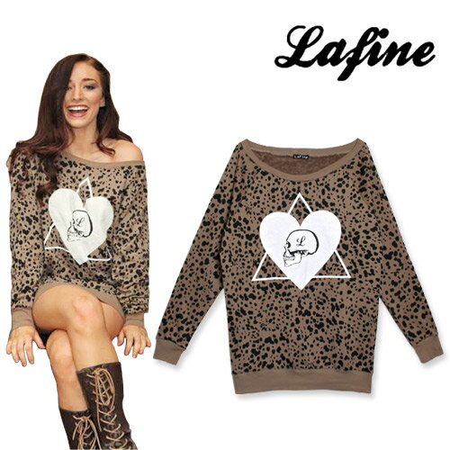 ラファイン スウェット プルオーバー レディース トップス チュニック 長袖 大きいサイズ オフショルダー 肩開き スカル LaFine Loves U [S][YP発送]