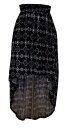LAブランドLAFINE(ラファイン)のスカート。 前が短く、後ろが長めのデザインで、 ラフに着ることのできるTシャツ素材のスカートです。 ブラック地にフラワーのような模様が描かれたフォーク柄。 ウエスト部分はゴムなので、バスト上まで持ってきて トップスとして着用してもOK。 コーディネートしやすいカラーで個性的なデザインのアイテムです。 サイズ: (XSサイズ)前着丈45cm、後着丈90cm、ヒップ106cm、ウエスト56cm(ゴム) (Sサイズ)前着丈48cm、後着丈93cm、ヒップ108cm、ウエスト60cm(ゴム) (Mサイズ)前着丈48cm、後着丈93cm、ヒップ110cm、ウエスト62cm(ゴム) カラー:ブラック 商品名:Lafine Tail Skirt ギフト対応 【楽ギフ_包装】【楽ギフ_メッセ】【楽ギフ_メッセ入力】