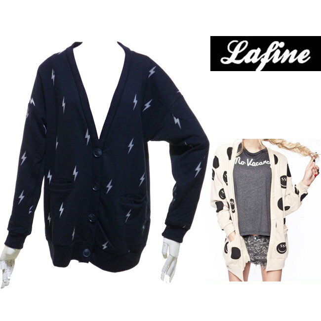 LAセレブ愛用ブランドLafineラファインオーバーサイズスウェットカーディガンsewat cardigan スマイル ボルト ロングカーディガン ジャージー レディース 春 秋 冬 Vネック インポート