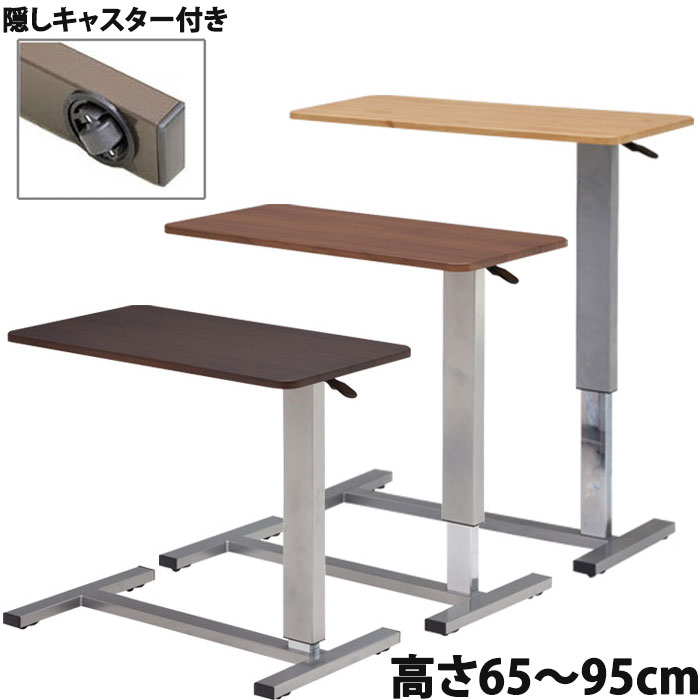 ベッドテーブル 昇降サイドテーブル 傷や汚れに強いメラミン天板 サイドテーブル 幅 80cm 奥行 40cm 介護テーブル 昇降式 電動ベッド用 360°回転 キャスター付 ナチュラル ブラウン ダーク GMK QSM-180 家具
