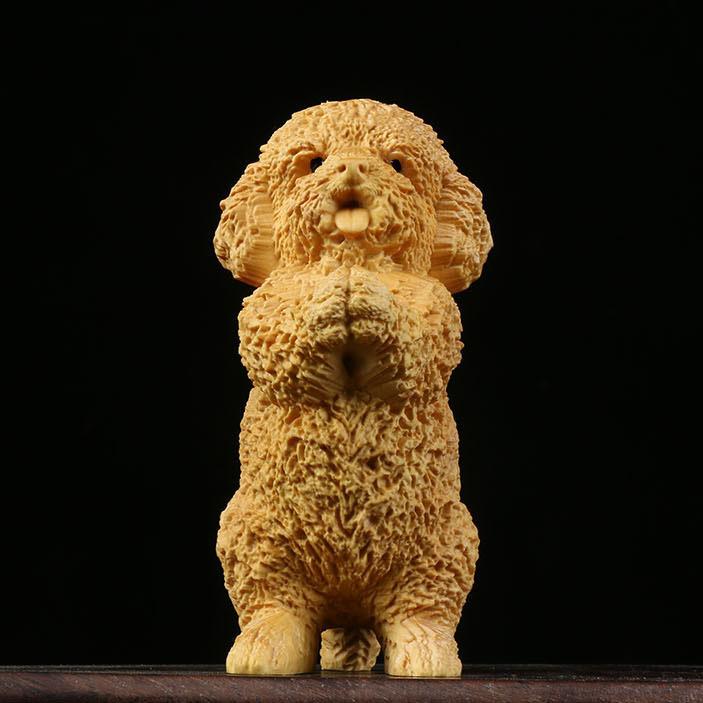 置物 トイプードル 子犬 小型犬 崖柏 黄楊木 デスク飾り オフィス 卓上 書斎 インテリア 彫刻 手磨き 天然木製 茶道具 コレクション 癒しグッズ かわいい