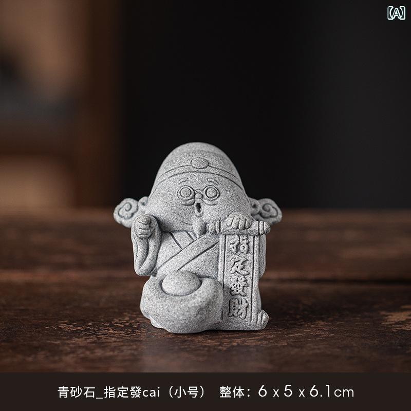 置物 かわいい キャラクター 財神様 ユニークデザイン 金運招来 開運招福 縁起物 ラッキーアイテム 石製 卓上インテリア 水槽アクアリウム 茶道具 ミニ盆栽用装飾 中華風 オブジェ(x2)