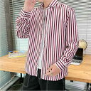 シャツ メンズ 若者向け 通気性 ルーズフィット 縦ストライプ 長袖 襟付き 開襟 カジュアル 韓国ファッション トレンド 春夏 羽織り ワインレッド ネイビー