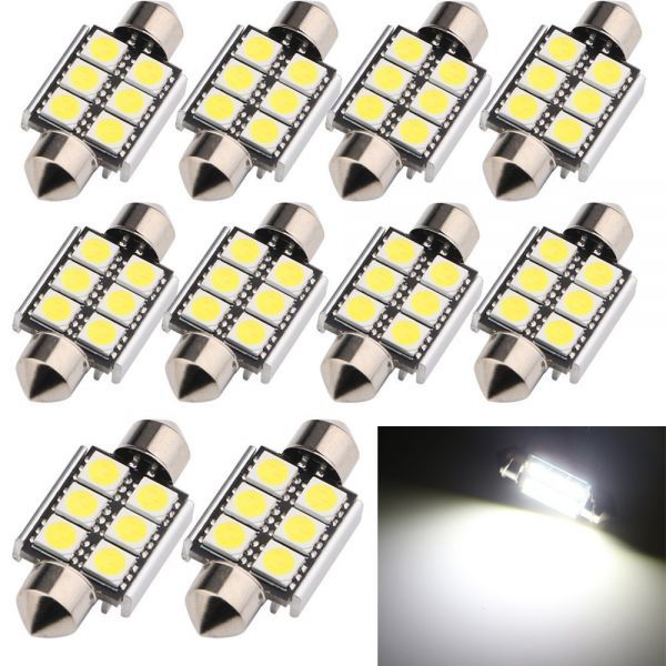 LEDルームランプ ナンバー灯 フェストン球 5050SMD×6連T10×36mm 37mmS8.5 白色 10個セット 送料無料
