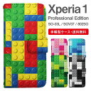 スマホケース 手帳型 Xperia 1 スマホ カバー SO-03L SOV40 802SO Xperia1 Professional Edition エクスペリア おしゃれ エクスペリアケース Xperia 1ケース トイブロック柄