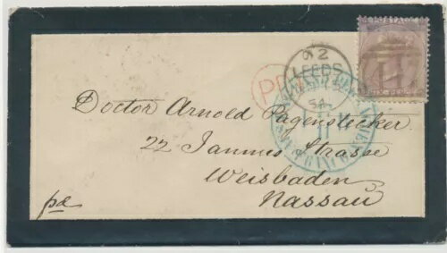 GB 1864 QV 6d Pl.4(ヘアライン付き:SG)デュプレックス「LEEDS / 447」およびBLUE TRANSITによる