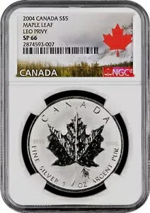 2004 カナダ $5 シルバー メープル リーフ、レオ プリヴィ付き - 送料無料