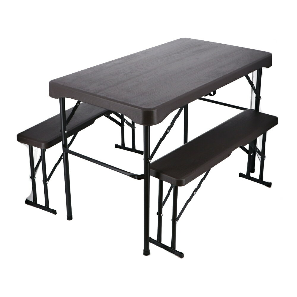 【特長】●木目調デザインでお庭のコーディネイトに●使用しない時は折りたたみ式でコンパクトに収納【テーブル 仕様】●外形寸法:幅1080×奥行600×高さ705(mm)●甲板の表面材:高密度ポリエチレン●表面加工:フレーム部 スチール(ポリエステル樹脂塗装)●フレーム:スチール●キャップ:ポリプロピレン●均等耐荷重:32kg ※耐荷重は測定値であり、保証値ではありません。●製品重量:約8.4kg【チェア 仕様】●外形寸法:幅880×奥行200×高さ405(mm)●座面の高さ:405(mm)●張り材:高密度ポリエチレン●表面加工:フレーム部 スチール(ポリエステル樹脂塗装)●フレーム:スチール●耐荷重:80kg×2名(1脚あたり) ※耐荷重は測定値であり、保証値ではありません。●製品重量:約3.4kg【使用上のご注意】●お子さまの玩具として使用するなど、本来の用途以外での使用はしないでください。事故や破損の原因となります。●火気に近づけないでください。また、高温となる場所では使用しないでください。変形や火災の原因となります。●危険ですので、本品の上に立ち上がったり、踏み台として使用しないでください。●加熱した鍋、湯沸かしなどを直接置かないでください。