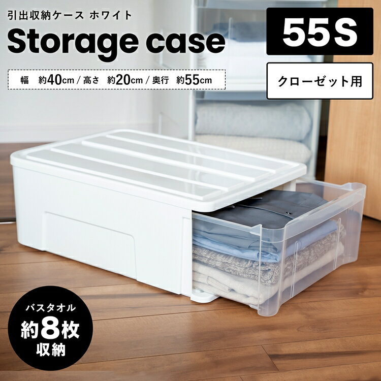 引出収納ケース 55S ホワイト 約幅40cmx奥行55x高さ20cm クローゼット 押入れ 洋服 収納 衣類 衣装ケース クリア ケース 半透明 積み重ね スタック ボックス 白い シンプル 小物 日用品 コーナンオリジナル LIFELEX