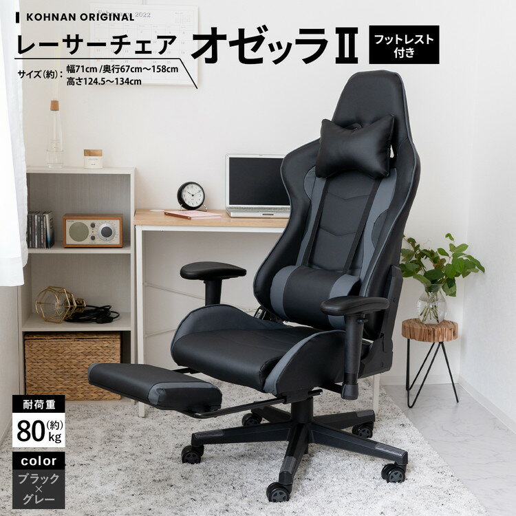 【サイズ】寸法(約):幅710×奥行670〜1580×高さ1245〜1340mm【特長】●最大リクライニング角度:150度【仕様】●寸法(約):幅710×奥行670〜1580×高さ1245〜1340mm●座面の高さ(約):410〜510mm※キャスター含む●耐荷重(約):80kg●構造部材:金属(スチール)・積層合板●張り材:ポリウレタン・塩化ビニル●クッション材:ウレタンフォーム●脚部/キャスター:ナイロン【取扱上のご注意】●直射日光または熱を避けてください。oオフィス家具・収納 oオフィスチェアー oOAチェアー o収納・インテリア o新生活・OAチェアー oテレワーク oひとり暮らし oブラック oグレー oゲーミングチェア oフットレスト
