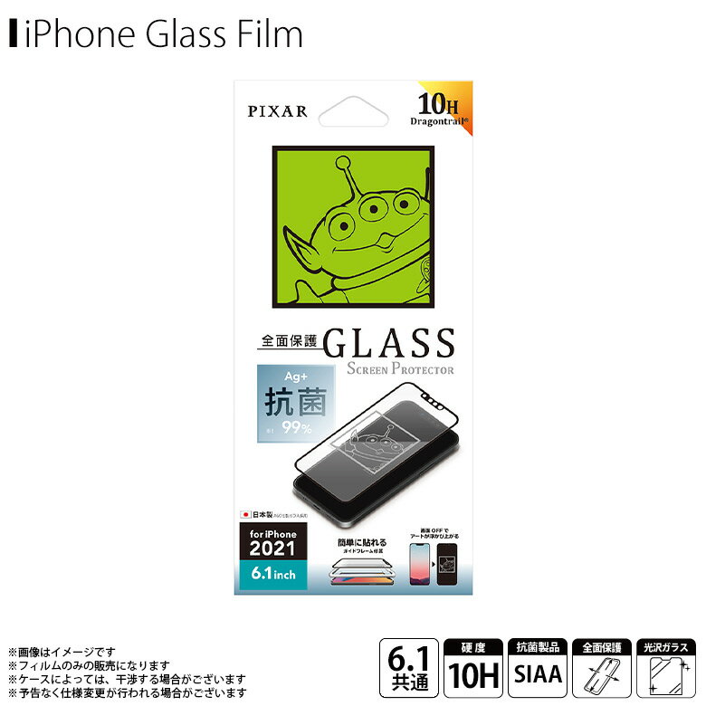 iPhone13 iPhone13 Pro フィルム ガラスフィルム キャラクター エイリアン PG-DGL21K05LGM【2971】Disney ディズニー 抗菌 強化ガラス 全面保護 汚れ防止 硬度10H 飛散防止 高光沢 トイストーリーPGA